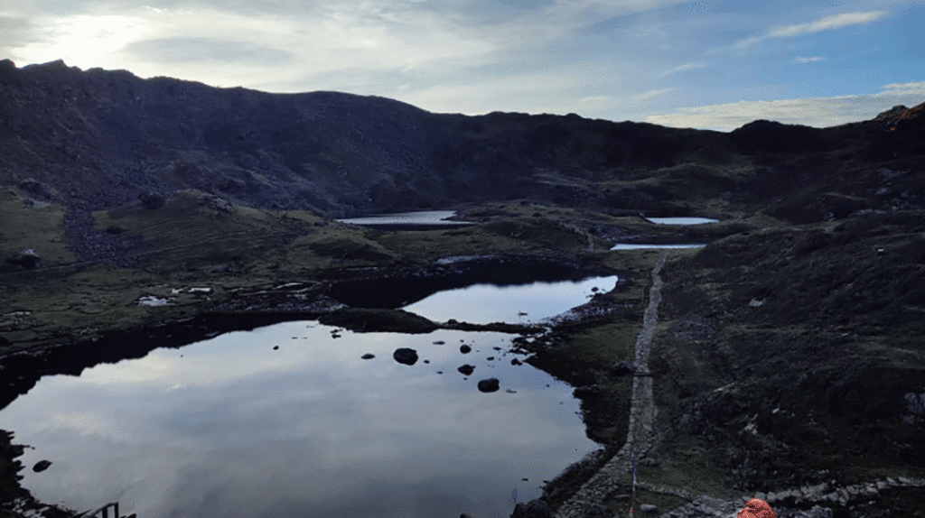 खाना खाएर १ बजे पाँचपोखरीतर्फ लाग्यौं । अगाडिको बाटो झन् अनकण्टार थियो । नाङ्गा ढुङ्गे डाँडा, पहरा काटेर बनाइएको साँघुरो उकालोओरालो, तलतिर हेर्दा आङै सिरिङ्ग हुने जोखिमयुक्त बाटोमा हाम्रा पाइला बढ्दै गए । कतै पसल थिएन । मूलको पानी पनि नपाइने अत्यासलाग्दो अवस्था थियो । बाटोमा भेटिने पाँचपोखरीबाट फर्केका यात्रुहरूसँग बाटोको जानकारी लिँदै अगाडि लागेका हामीलाई मौसमले भने गजबको साथ दिएको थियो । अन्ततः लौरीविनाको उकालो भनिने १ सय ६४ वटा नाक ठोक्किने ठाडो सिंढीहरू र अप्ठ्यारा बाटाहरू पार गर्दै साँझ ५ः३० मा पाँचपोखरी पुगियो । पुग्नेबित्तिकै यहाँको पाँचपोखरी होटेलमा कोठा बुक गरेर मन्दिरमुनिबाट निस्केको जल कुण्डमा स्नान गरियो । पानी अत्यधिक चिसो थियो । पाँचपोखरीमा भने नुहाउन नपाइने रहेछ ।