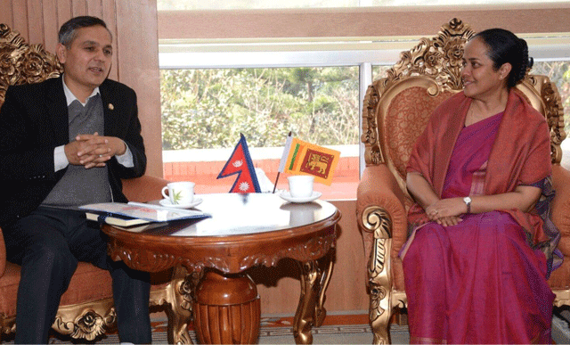 काठमाडौं/ गृहमन्त्री ओमप्रकाश अर्यालसँग नेपालका लागि श्रीलङ्काका राजदूत रुवान्थी डेल्पिटियाले शिष्टाचार भेट गर्नु भएको छ । गृह मन्त्रालयमा सोमबार भएको भेटमा नेपाल–श्रीलङ्का सम्बन्धका विविध आयामबारे विचारविमर्श भएको मन्त्रालयले जनाएको छ ।